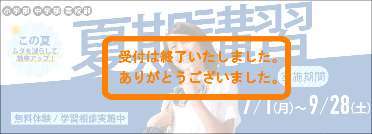 基礎力アップにより、夏休み明けの授業にスムーズに入れるよう全力でサポートします。