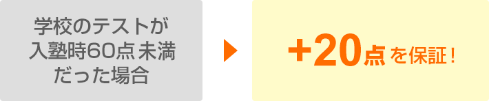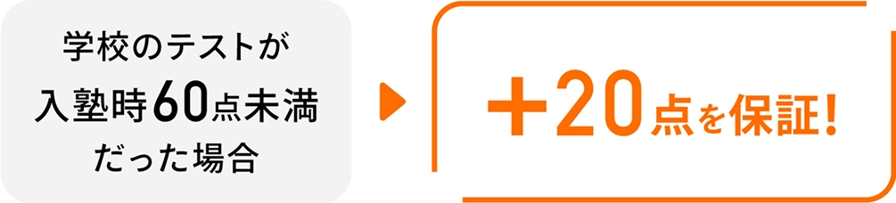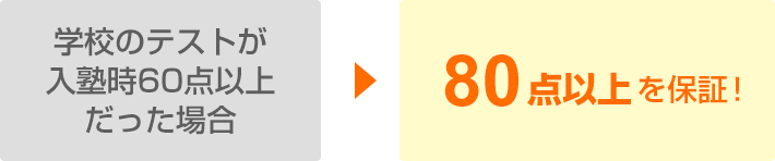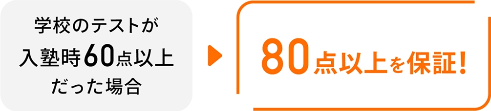 入会後3回以内の中間・期末テストで、下記いずれかを1回以上保証致します。
