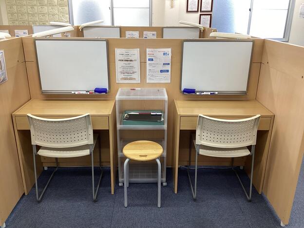 ナビ個別指導学院の授業は、個別の席ごとに設置された自分専用のホワイトボードで解き方や考え方を一緒に確認、それから生徒が問題を解くという「個別授業」スタイルです。
