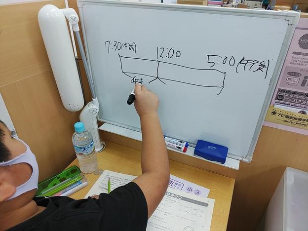 ナビ個別指導学院の授業は、個別の席ごとに設置された自分専用のホワイトボードで解き方や考え方を一緒に確認、それから生徒が問題を解くという「個別授業」スタイルです。
