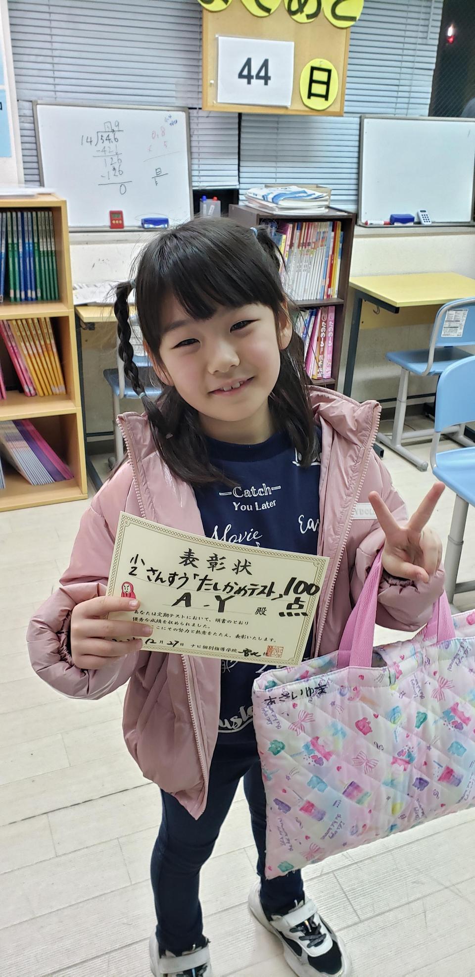 今日は、かわいい小6生のAさん、小2生のBさんが100点取って最高の笑顔を送ります!