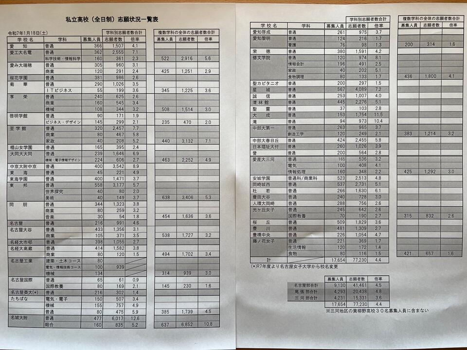 ・1/22水:名古屋高校、たちばな高校、啓成高校、滝高校