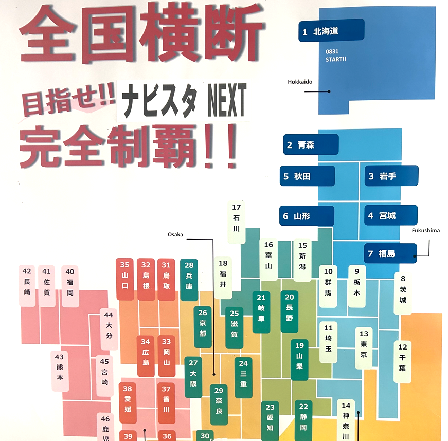 ※写真は「全国高校入試問題正解」を上は北海道から最後は沖縄→愛知まで進めていく日本縦断の地図です。教室に掲示してあり、中3生の授業のたびに進度を確認しています。