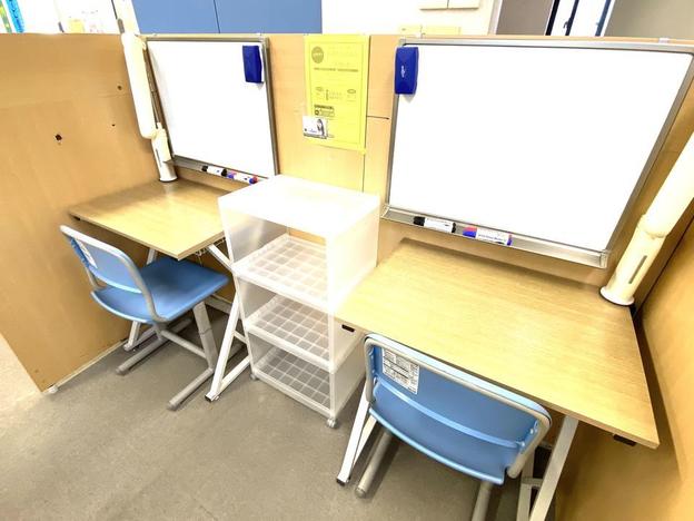 ナビ個別指導学院の授業は、個別の席ごとに設置された自分専用のホワイトボードで解き方や考え方を一緒に確認、それから生徒が問題を解くという「個別授業」スタイルです。