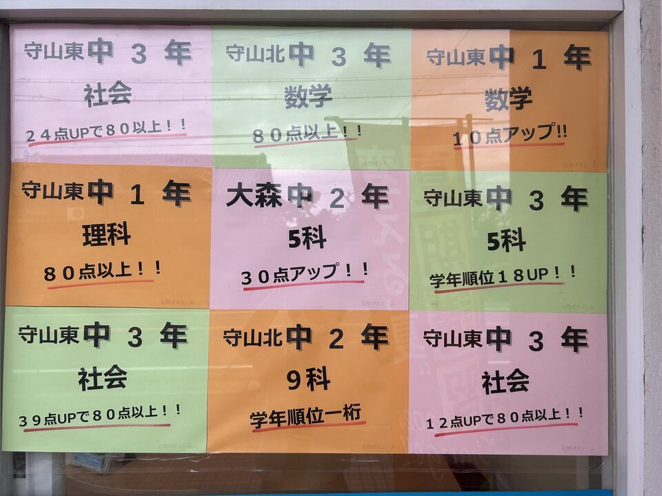 通知表の内申点については全体的に少しずつ上がってきているようですが、一部美術などの教科では下がったような生徒が多いように感じます。提出物や授業態度で評価を落とさず、特に数学や英語ではテストの応用問題で差をつけることが4や5を取るために必要かと感じます。