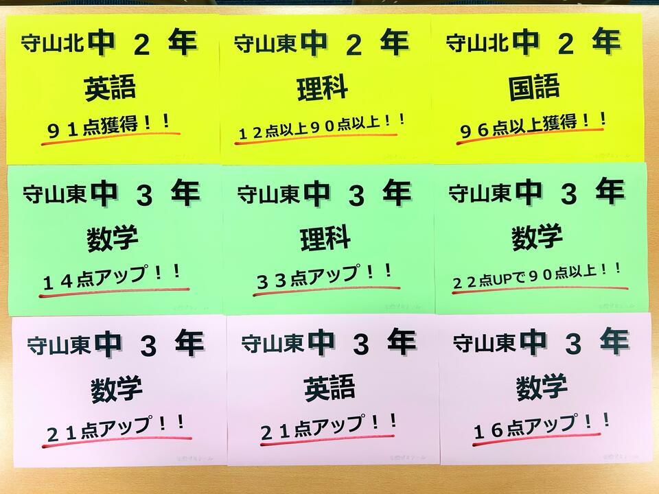 喜多山校の生徒で成績が上がった生徒の速報です。2学期期末テストも頑張りましょう。