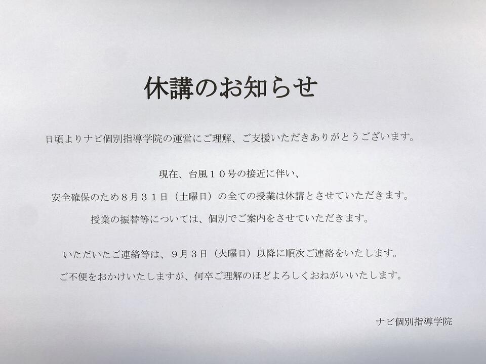 安全を最優先に考え、8月31日(土曜日)の授業は全て休講とさ