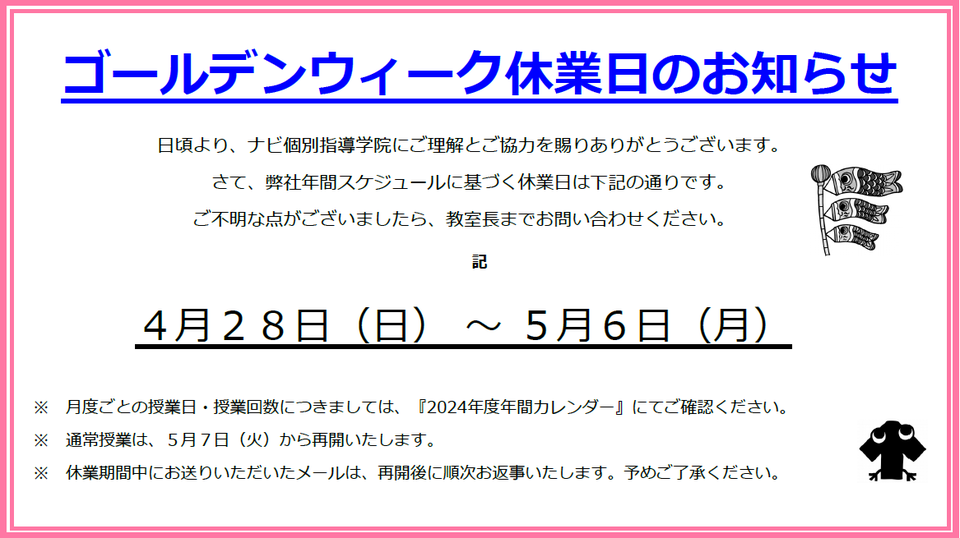 ゴールデンウイーク休業日となっており、