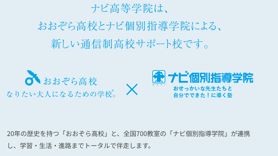 この度、ナビ個別指導学院のグループ会社である、おおぞら高校は開校して20年目を