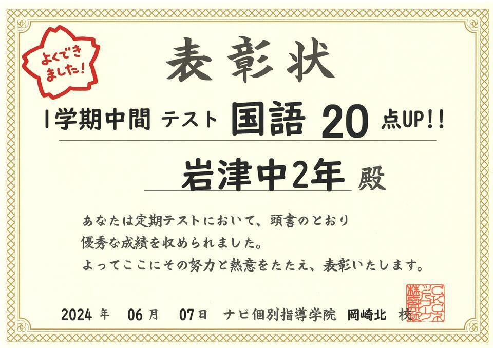 国語 20点UP!!!