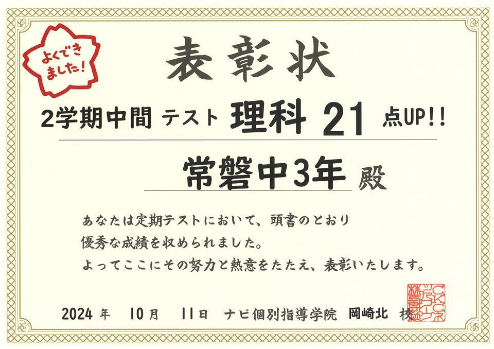 こちらの生徒さんは、理科において21点の成績向上を達成しました。当塾では、