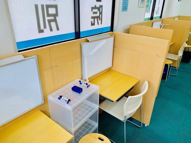 ナビ個別指導学院の授業は、個別の席ごとに設置された自分専用のホワイトボードで解き方や考え方を一緒に確認、それから生徒が問題を解くという「個別授業」スタイルです。