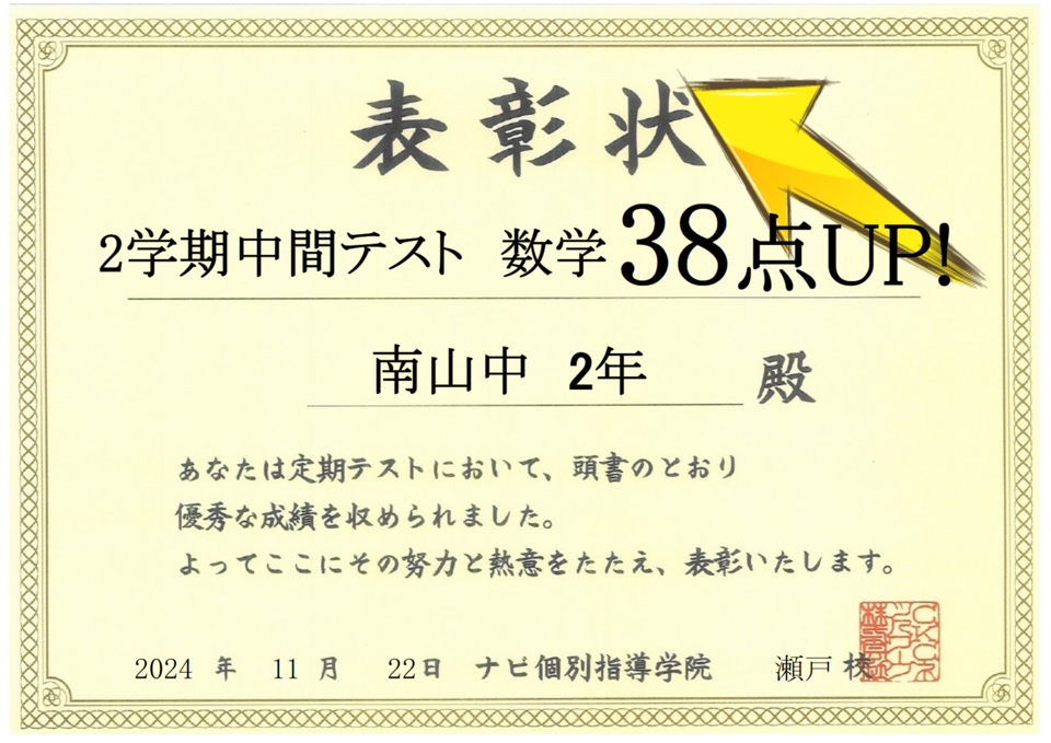 2学期中間テスト成績アップおめでとう!