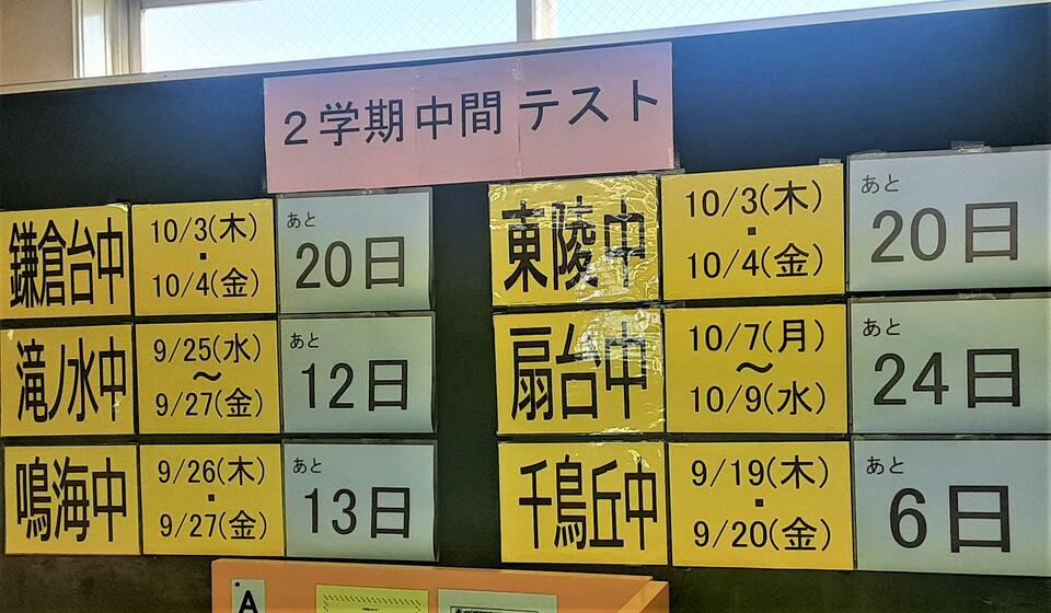 2学期の中間テスト(千鳥丘中は2期制なので第2回ですが)は