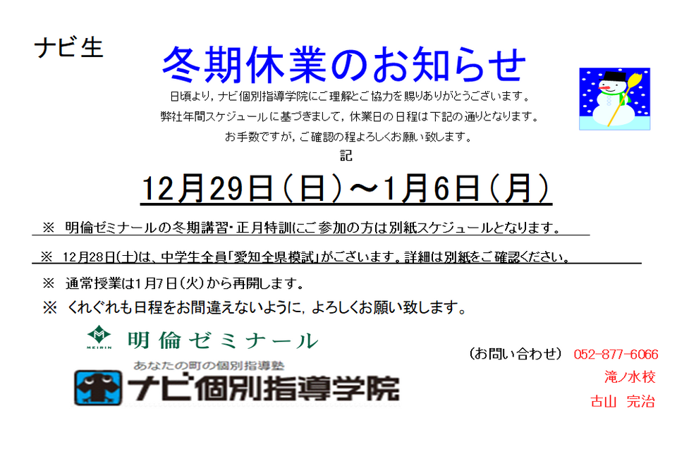 ナビ個別指導学院滝ノ水校はお休みさせていただきます。