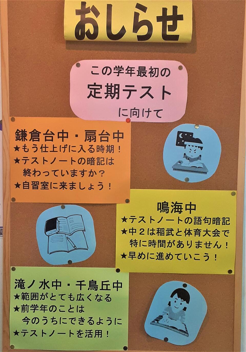 初めてのテストとなる中1のみなさんは