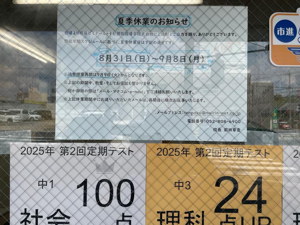 上記の期間は終日休校となり、校舎自体しまっておりますので、ご注意ください。