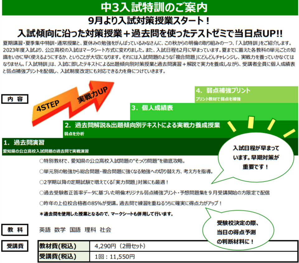そこで、ナビ個別指導学院天白校に併設している学習塾(明倫ゼミナール)では、中学3年生対象の