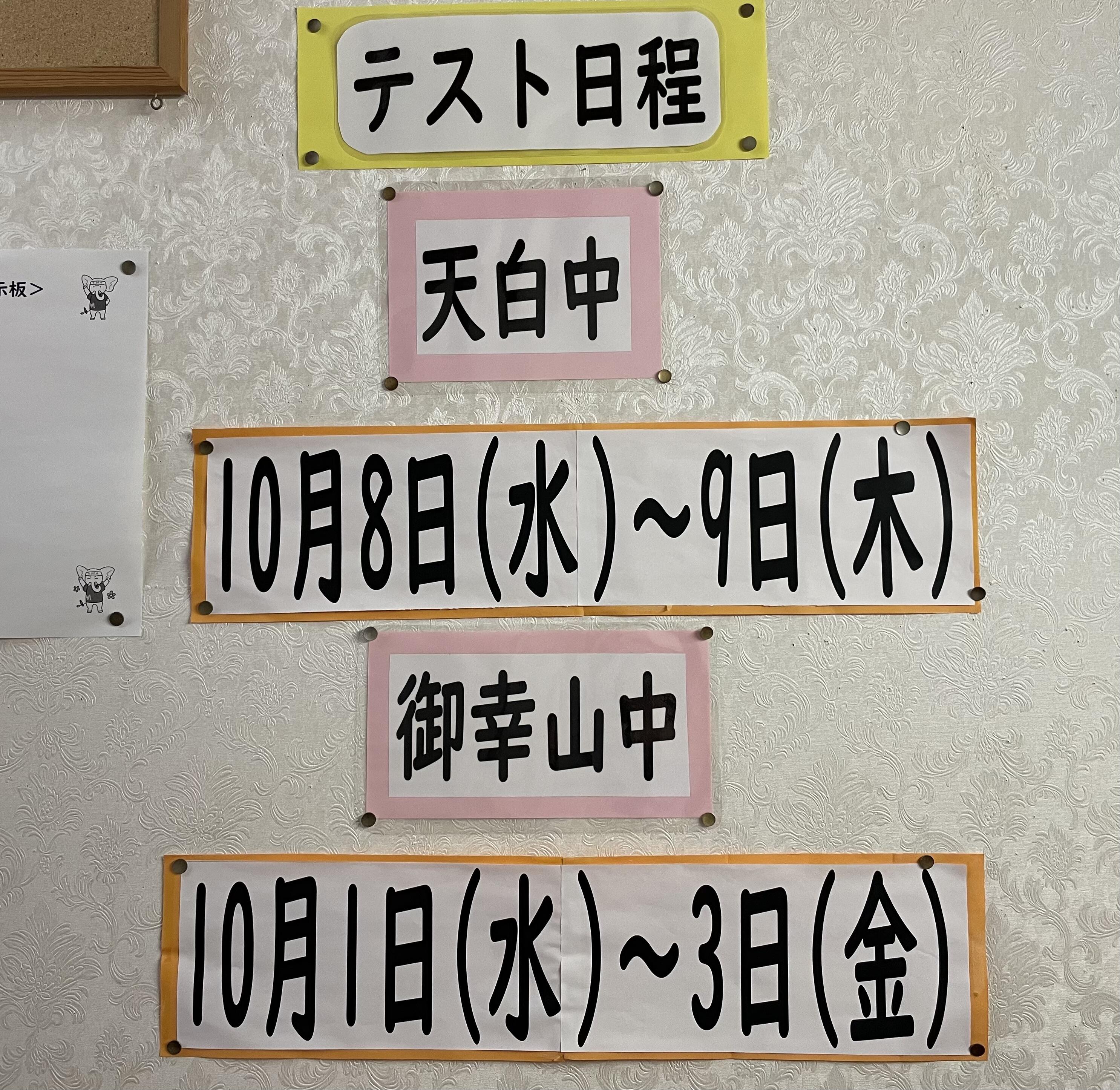 中間テストまで1か月を切っています!