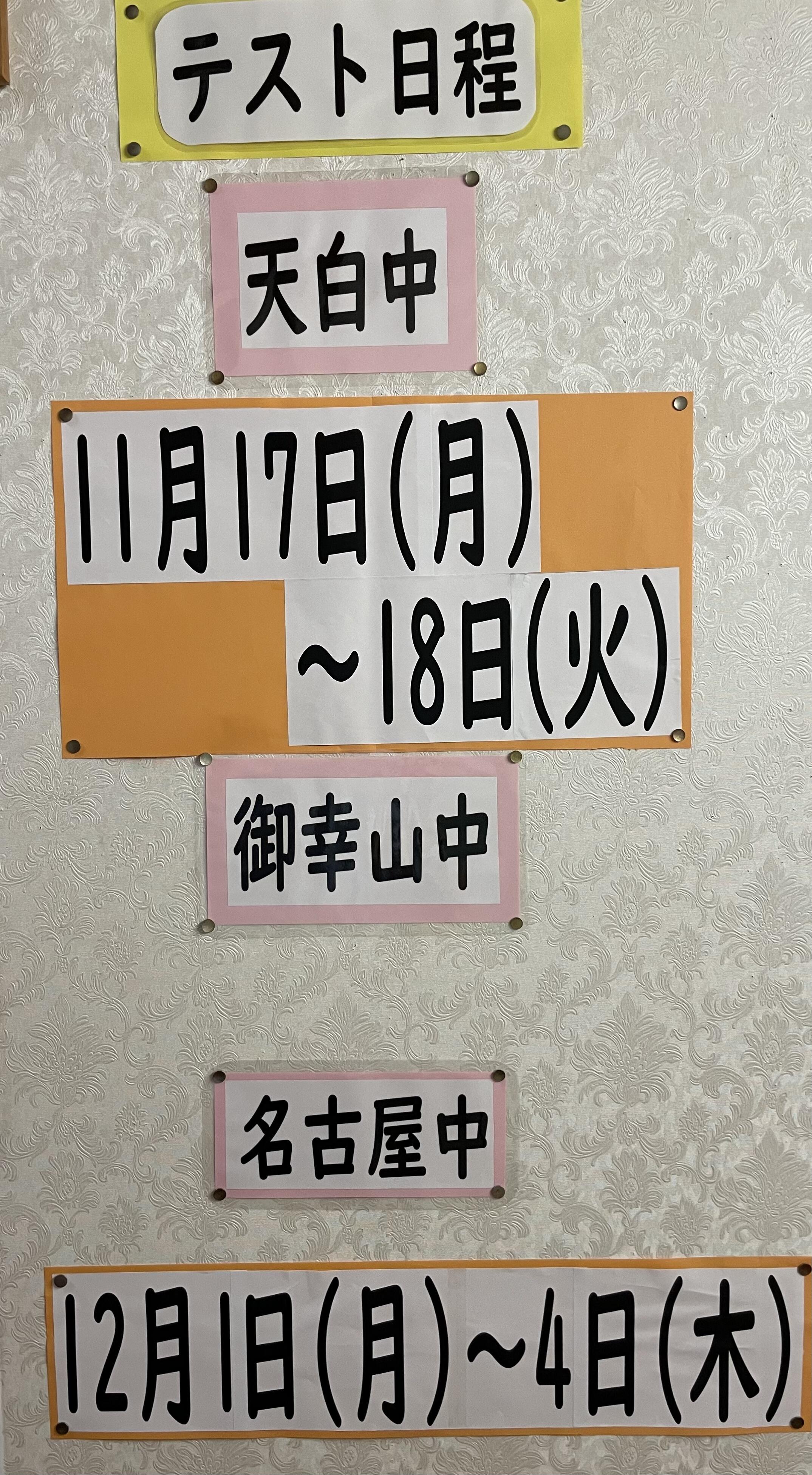 さて、今週で天白校通っている生徒の2学期中間テストが終了いたしました!