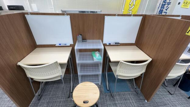 ナビ個別指導学院の授業は、個別の席ごとに設置された自分専用のホワイトボードで解き方や考え方を一緒に確認、それから生徒が問題を解くという「個別授業」スタイルです。