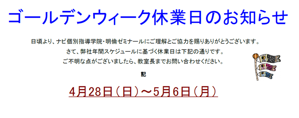 日頃より、ナビ個別指導学院にご理解とご協力を賜り