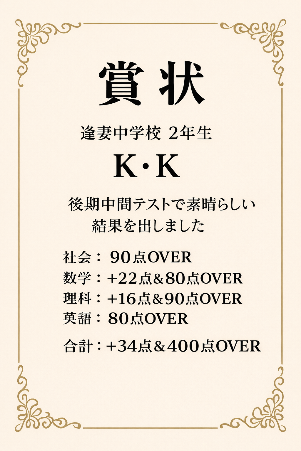 ・テスト直前だけでなく、日頃からコツコツ取り組めたことが結果につながりました