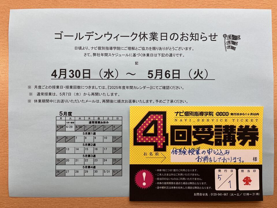 4月30日(水)~5月6日(火)はゴールデンウィーク休業日です。