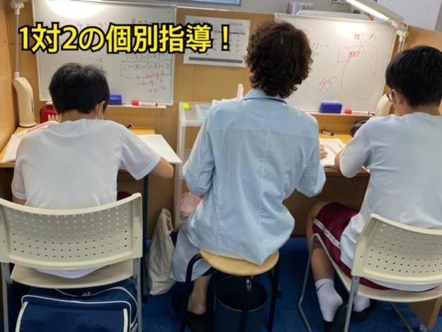 ナビ個別指導学院の授業は、個別の席ごとに設置された自分専用のホワイトボードで解き方や考え方を一緒に確認、それから生徒が問題を解くという「個別授業」スタイルです。