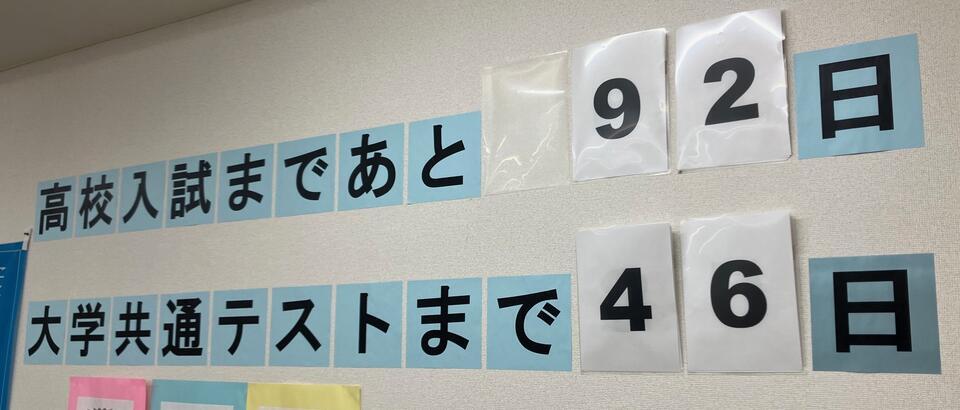 残すところ、 公立高校一般入試まで、あと92日 大学共通テストまで、あと46日 となりました。