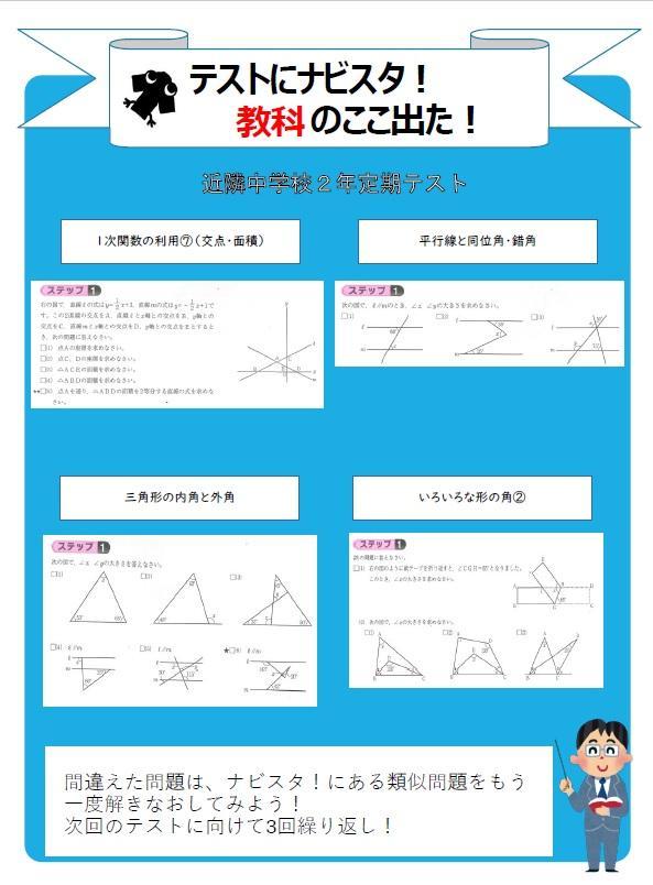 近隣中学校の定期テストに「ここ出た!」がありました!(右画像)
