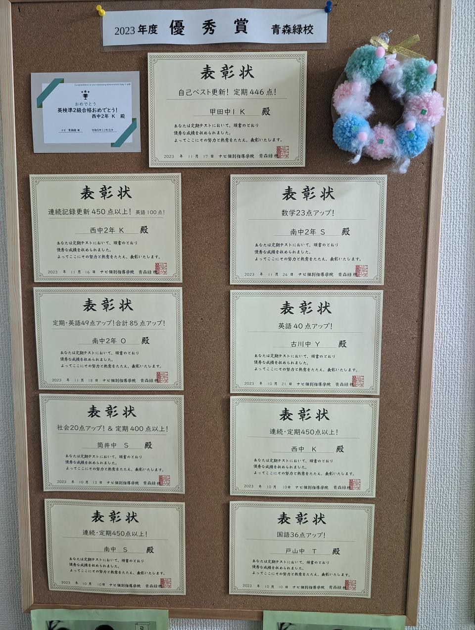 2023年度の冬・春の受講教科での成績アップの生徒の一部をご紹介!!