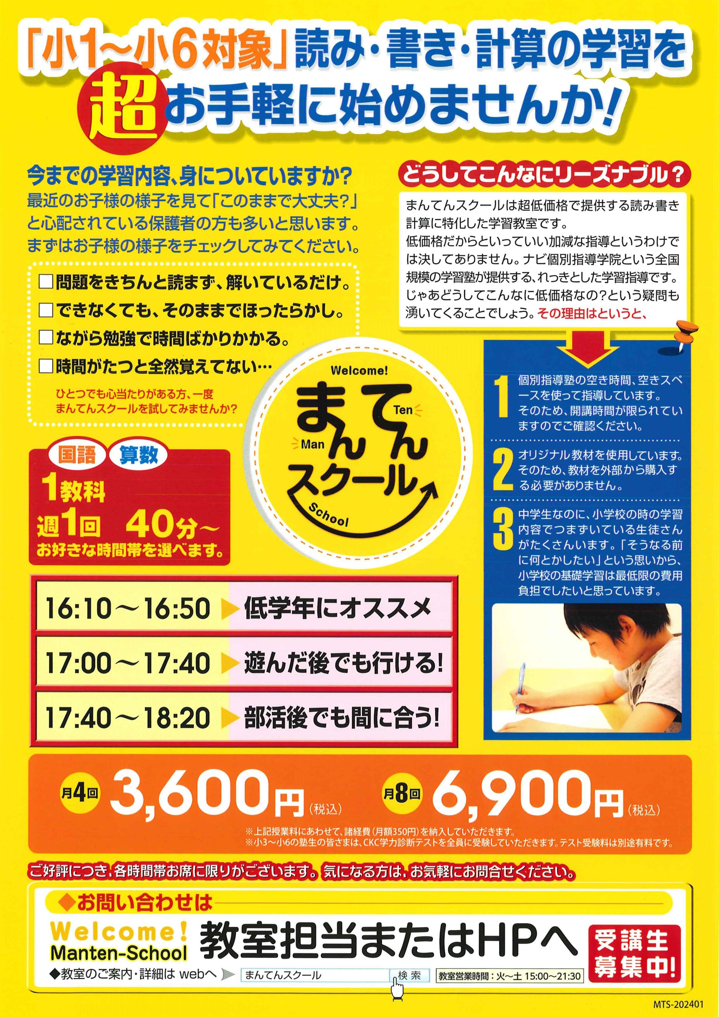通常のコース以外に小学生向けのまんてんスクールがございます。