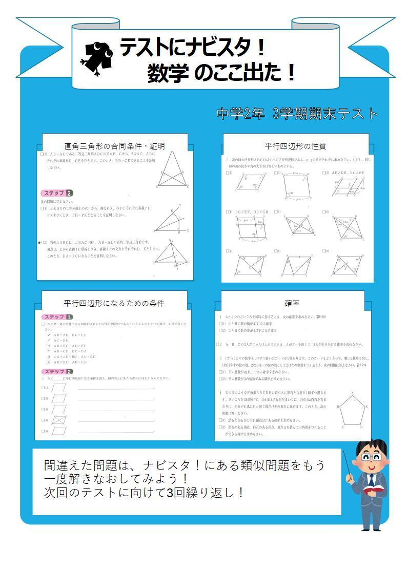 そこで、ナビ個別の自社教材「ナビスタ!」と近隣中学校の