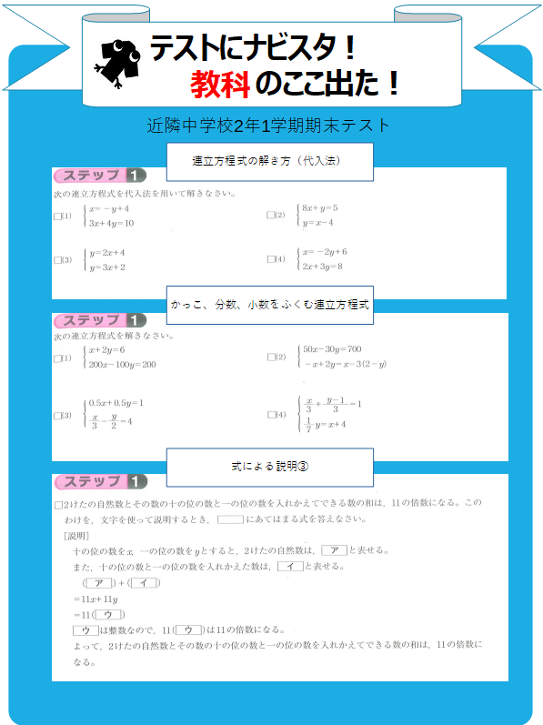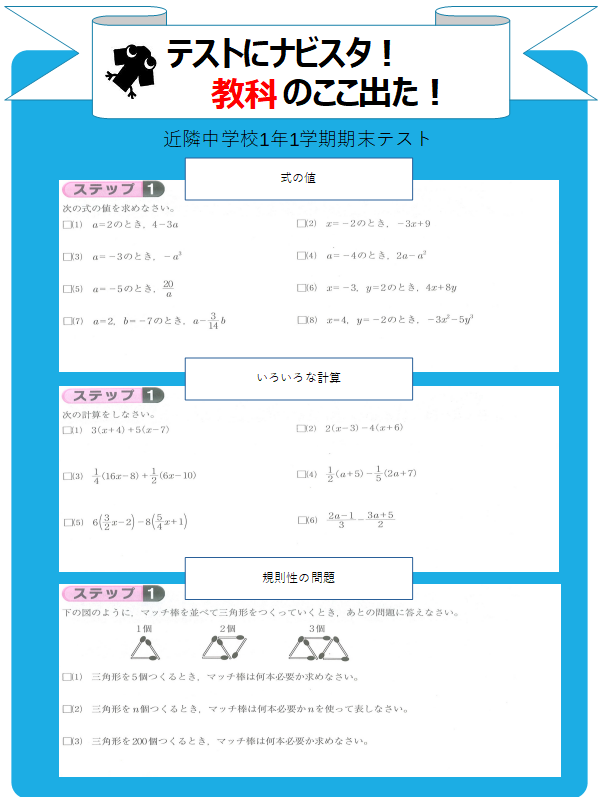 前回は中3の数学のテスト内容を、ナビ個別の自社教材「ナビスタ!」と近隣中学校の前回定期テストの分析を「ここ出た!」で確認しました。