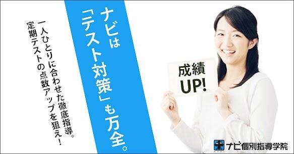 ナビ個別指導学院では5教科の定期テスト対策を行っています。 学習相談や無料体験授業も実施していますので、 お気軽にお問い合わせください。