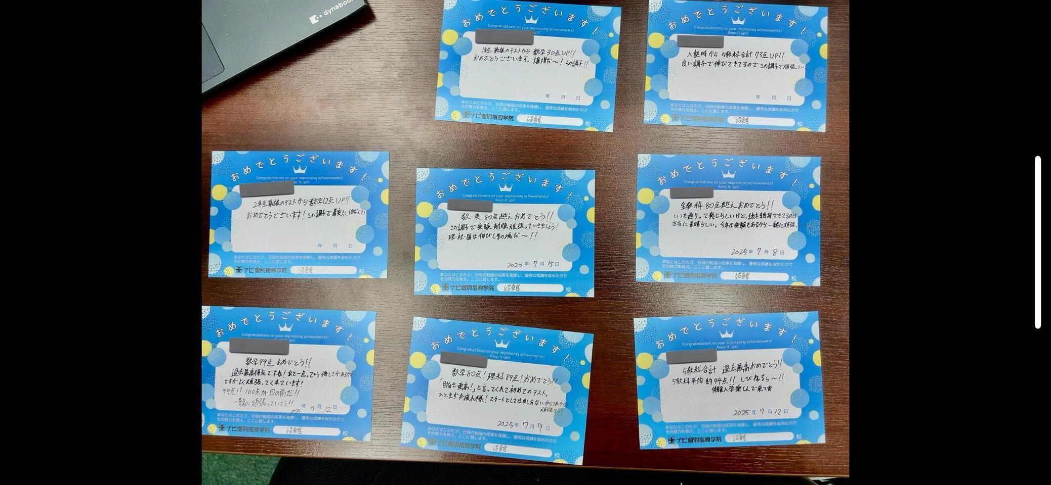 ナビ個別指導学院ではテストの点数が上がった子たちには「おめでとうカード」というのを渡しております!