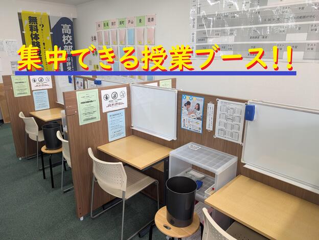 ナビ個別指導学院の授業は、個別の席ごとに設置された自分専用のホワイトボードで解き方や考え方を一緒に確認、それから生徒が問題を解くという「個別授業」スタイルです。