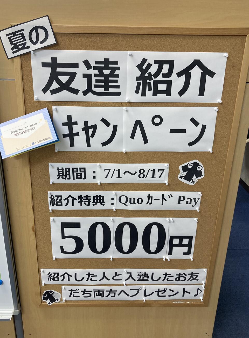 ナビ個別指導学院では現在「夏の友人紹介キャンペーン」を実施中です!