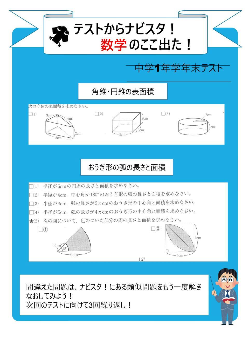 そこで、ナビ個別の自社教材「ナビスタ!」と近隣中学校の前回定期テストの