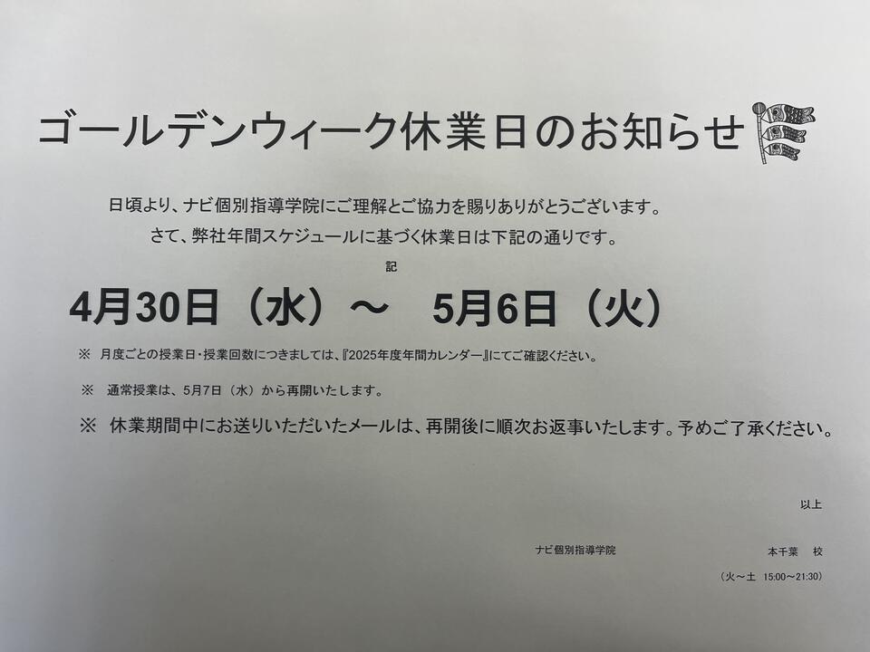 本日は、GW(ゴールデンウィーク)休業に関してです。
