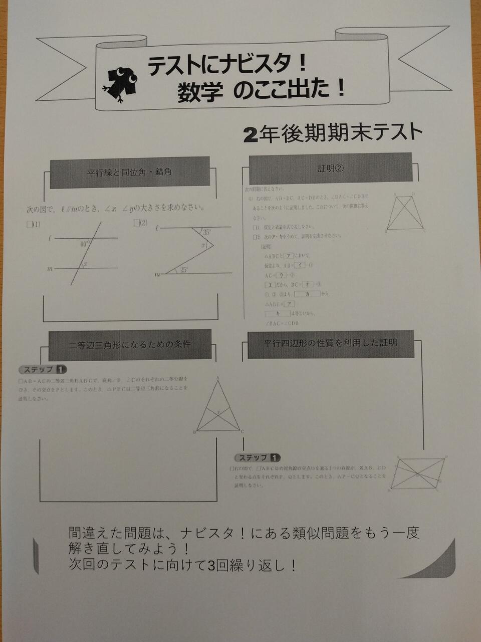 そこで、ナビ個別指導学院の自社教材「ナビスタ!」と近隣中学校の前回定期テストの分析を