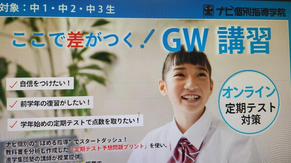 ナビ個別指導学院では、GW講習も用意して、テストに向けた準備をしていますので、