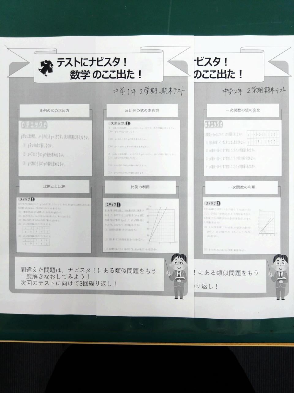 テスト範囲の大部分が「比例・反比例」の単元で構成されました。