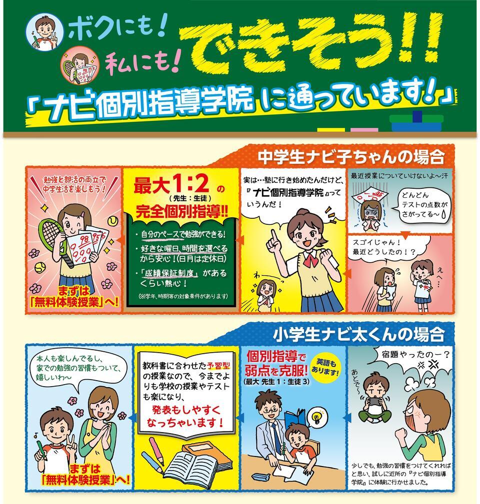 新規お問い合わせの方は、ナビ個別の「無料体験授業」を通して「テスト対策」も受講可能です。