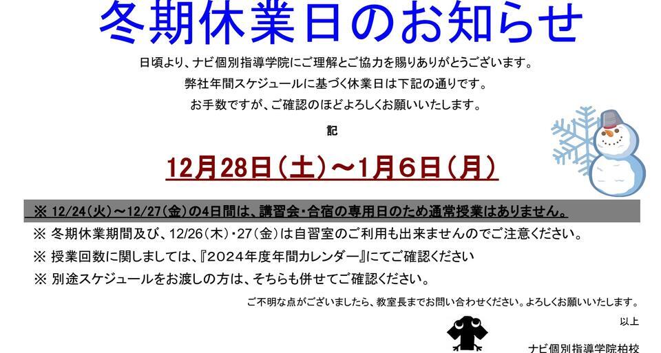 なお、ナビ個別指導学院柏校は、12月28日(土)から1月6日(月)まで冬期休業日となります。
