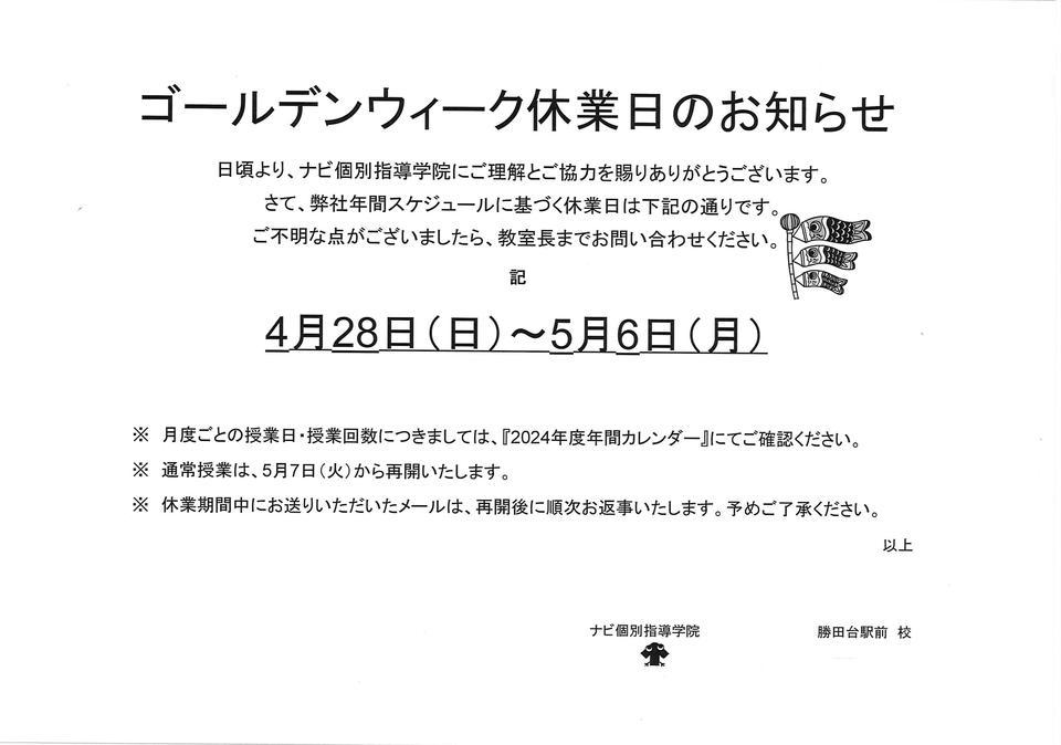 上記期間は、講習会・自習スペースも含め完全休講となります。