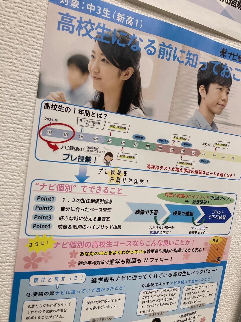 ナビ個別指導学院では高校生も指導しており、主に高校の定期テスト対策を実施しています。