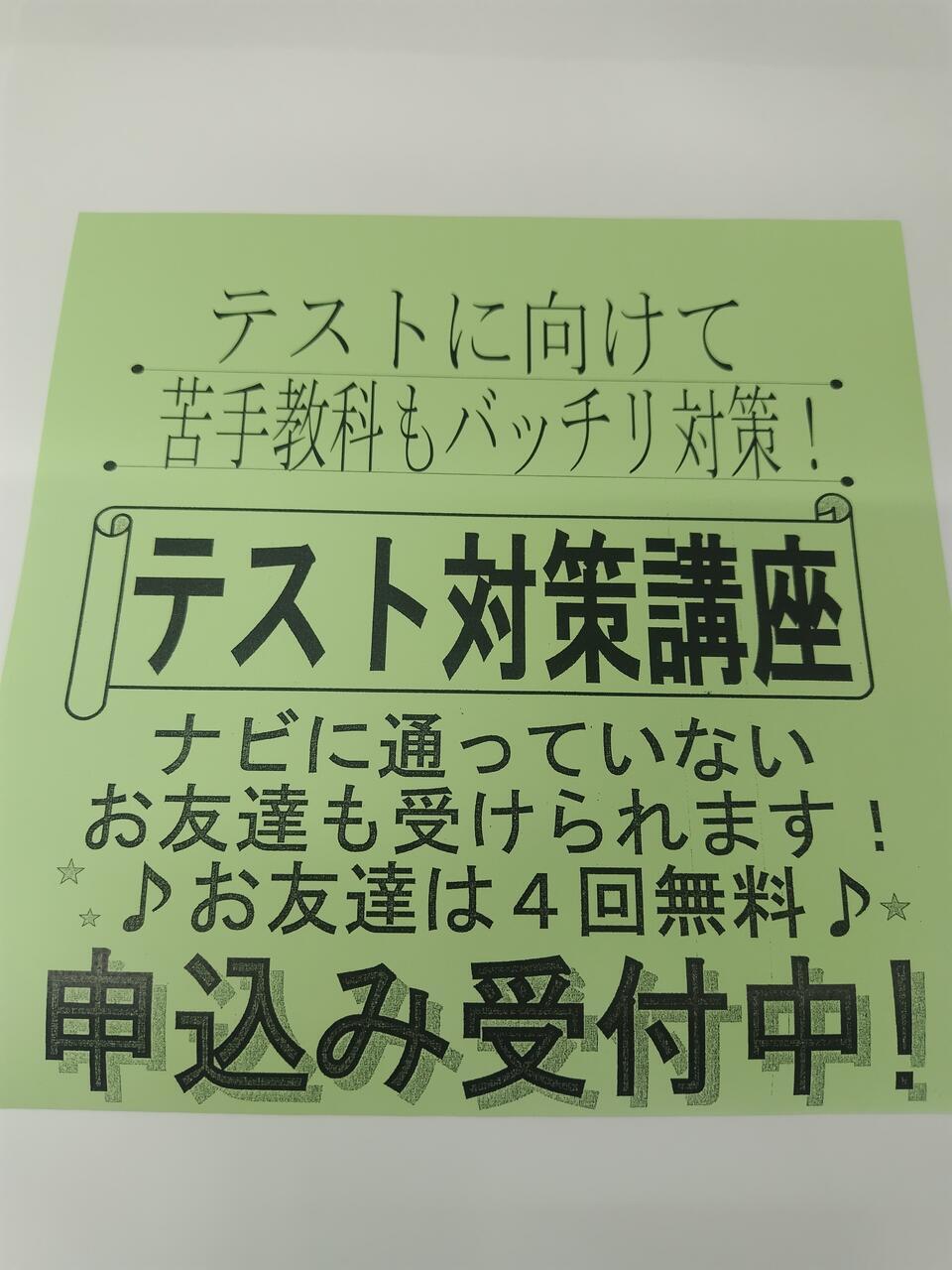 ナビ個別の「無料体験授業」を通して「テスト対策」も受講可能です。