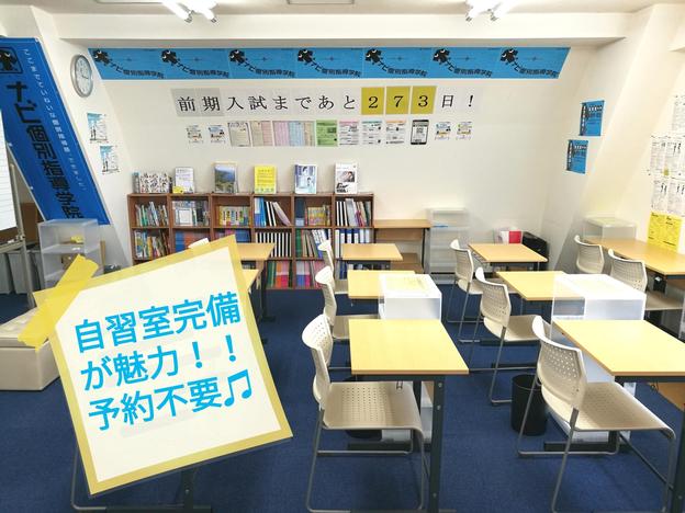 塾が開いている時間に好きなタイミングで使える自習室や、